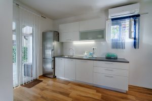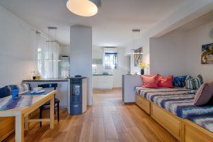 Die untere Etage ist absolut barrierefrei. Die Terrasse des oberen Stockwerkes eröffnet die Aussicht über die Altstadt von Krk und lädt Sie zum gemütlichen grillen ein. Schlafmöglichkeiten stehen für 6 Personen, und durch Zusatzbetten bis zu 9 Personen, bereit. Eine moderne Küche sowie zwei kleine Duschbäder. Unsere Villa verfügt über drei Schlafzimmer auf zwei Stockwerken. Jedes Zimmer verfügt über eine zusätzliche Schlafcouch.